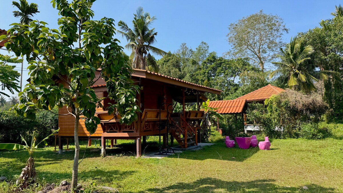 Live the dream – D'aisling phríobháideach trá ag Zen Beach Athchóirithe 130 méadar cearnach Balinese - style house just steps from iconic Zen Beach – Koh Phangan's most beloved sunset spot. Tá 2 sheomra leapa A/C, seomra folctha galánta, agus spás maireachtála 80 méadar cearnach faoi iamh le tolglann, áit itheacháin, cistin iomlán le beár, agus spás oibre san áireamh. Timpeallaithe ag glaise agus gaoth aigéin. Foirfe do 4 aoi + leanbh. Suíomh den scoth in aice le ióga, ionaid leighis, caiféanna, margaí agus scútair ar cíos.