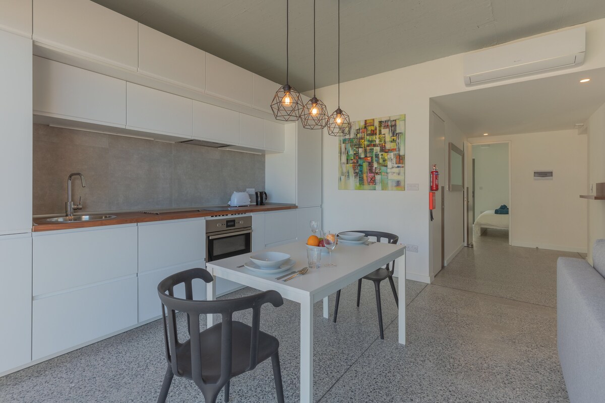 Fan i gcroílár St. Julian's le radhairc iontacha ar an bhfarraige thar Bhá Spinola agus ar na báid iascaireachta ildaite. Tá beárbaiciú gáis ag fanacht leat ar an ardán mór inar féidir leat ithe agus tú ar maos sna radhairc agus san atmaisféar áitiúil. Tógann siúlóid ghearr 3 nóiméad tú díreach chuig imeall farraige Bhá Spinola, áit ar féidir leat taitneamh a bhaint as snámh nó triail a bhaint as ceann de na bialanna éagsúla go leor. Níl tú ach siúlóid ghearr ó na siopaí go léir. Tá stad an bhus díreach taobh amuigh agus cuireann sé naisc iontacha ar fáil timpeall Mhálta.