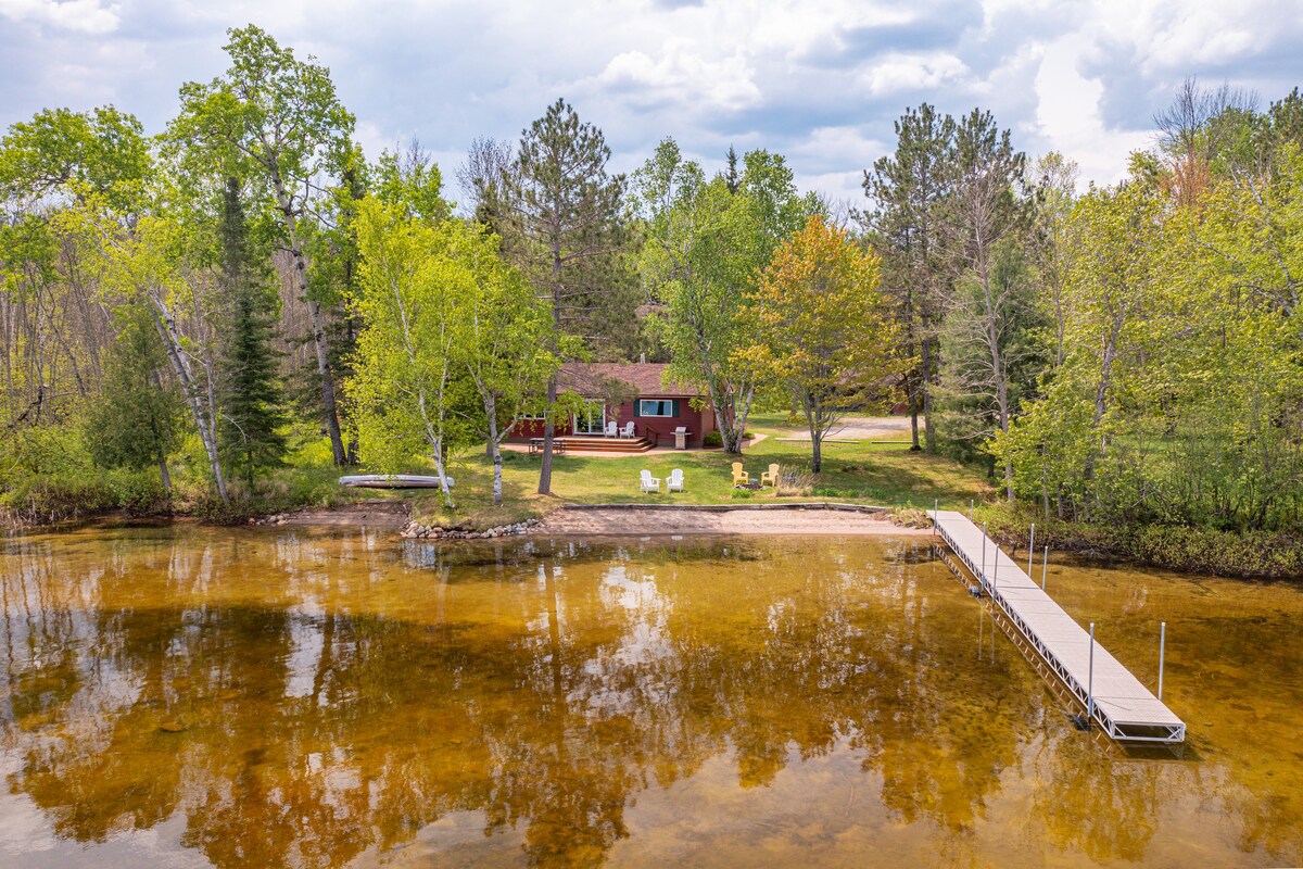 Tá tearmann compordach agus cluthar i Northwoods Minnesota ag fanacht leat féin agus le haghaidh spás ciúin chun do scíth a ligean agus taitneamh a bhaint as na spásanna deartha laistigh agus lasmuigh. Tá baile beag tuaithe le saoráidí simplí leath - mhíle ar shiúl nó cathracha móra 20+ míle ar shiúl ó ghníomhaíochtaí lasmuigh. Is suíomh foirfe é ár ndroichead 80 troigh chuig oileán príobháideach ar lochán chun leabhar a léamh nó cártaí súgartha a léamh le roinnt cairde. Coinneoidh ár mbeár uathúil íoslaigh saincheaptha agus na spásanna pearsanta máguaird ar do shuaimhneas thú.