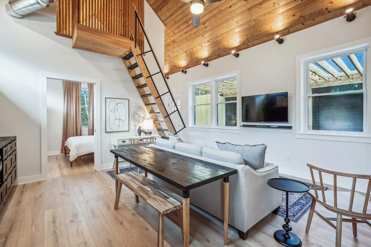Is teach dhá sheomra leapa úrnua é an Iarscríbhinn ag King's Crossing atá feistithe go blasta, teach seomra folctha amháin ina bhfuil lochta codlata thuas staighre. Déantar an spás a uasmhéadú agus baintear leas as airde chun eispéireas uathúil comhaimseartha a chruthú i measc suíomh tuaithe in aice le croílár Fredericksburg stairiúil! Tá King's Crossing neadaithe idir lár Fredericksburg agus na páirceanna catha; gheobhaidh tú amach gur tiomáint éasca é dul chuig nithe is díol spéise áitiúla. Ina theannta sin, táimid i bhfoisceacht 1 uair an chloig de DC, Richmond, agus Shenandoah.