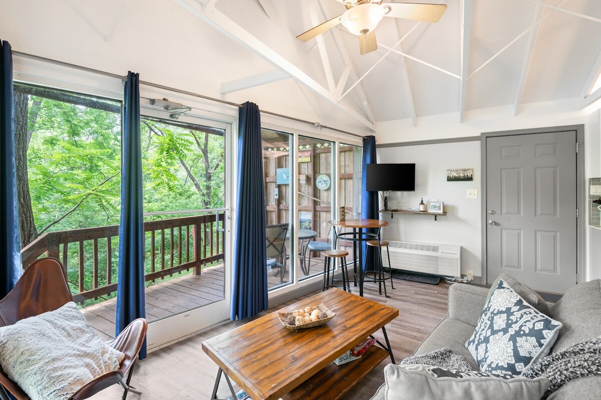 Éalaigh chuig áilleacht Shléibhte Shenandoah agus bain sult as rochtain éasca ar Outfitters Abhainn Shenandoah ón gcábán logála saincheaptha seo in Luray. Lig do scíth sa sabhna, lig do scíth i gcathaoir an chiseáin chrochta ar an deic, seinn poll arbhair sa chlós, luasc ar na luascáin faoi dheic, nó lig do scíth timpeall an phoill dóiteáin. Caith am ag cadhcáil, ag feadánra, nó ag raftú síos Abhainn Shenandoah... is muidne an Airbnb is gaire don Shenandoah River Outfitters! Tá an radharcra agus na cuimhní cinn a dhéanfaidh tú iontach!