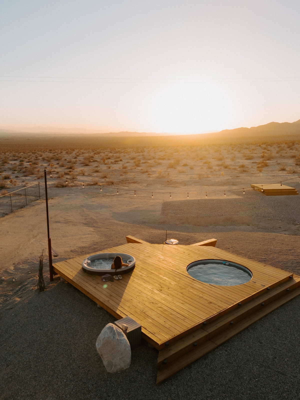 ▪︎ Linn snámha nua-aimseartha shnasta le spá téite agus seilf ghruaige ▪︎ Limistéar folláine tiomnaithe ina bhfuil sauna bairille, tumadh fuar, cithfholcadán agus Crainn Joshua ▪︎ Radhairc iontacha ar luí gréine agus ar éirí gréine le háiteanna suí fairsinge lasmuigh ina bhfuil dealbh dóiteáin Tá ár saoráidí go léir comhtháite go cúramach i gcúig acra phríobháideacha i gceantar Joshua Tree, ag tairiscint radhairc gan bhriseadh ar an bhfásach, spéartha oíche eisceachtúla, agus mothú neamhchoitianta spáis agus príobháideachta, agus níl sé ach turas gairid sa charr go dtí an baile agus go dtí Páirc Náisiúnta Joshua Tree.