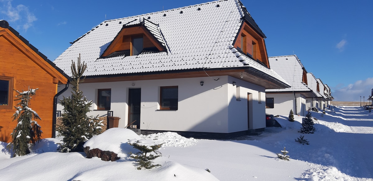 Bain sult as do scíth i dteach nua i gcroílár na dTátranna in Veľká Lomnica. Tá an teach foirfe do theaghlaigh agus do ghrúpaí móra (12 duine ar a mhéad). Tá spás sna seomraí leapa do 8 n-aíonna (+ tá 4 áit chodlata eile san áiléar - ach tá rochtain níos lú compordach ann trí staighre leictreach). Tá príobháideacht, páirceáil saor in aisce, cistin lánfheistithe, cúinne do pháistí agus gairdín fálaithe le hardán geimhridh sa teach. Is é an áit fhoirfe é chun scíth a ligean. Tá sé suite ach 10 km ón ionad sciála in Tatranska Lomnica.