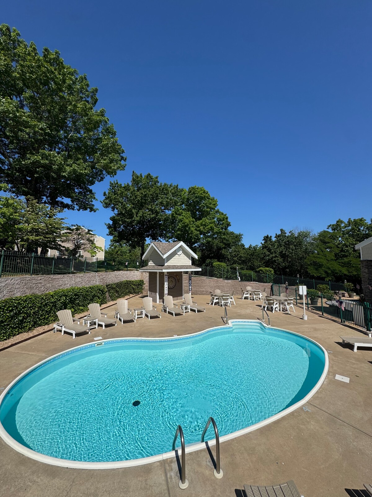 Lig do scíth leis an teaghlach ar fad ag an árasán nua - athchóirithe seo ar Table Rock Lake. Codlaíonn an 2bd/2bath síochánta seo 6 go compordach, agus tá sé suite díreach ó dheas ó Dhroichead Chathair Kimberling. Tá cáil ar Table Rock Getaways as a throscán compordach, as a chistin lánfheistithe, as na hearraí fáilteachais a chuirtear ar fáil, agus as a bheith ina thearmann cluthar a bhfuil boladh iontach air. Bain sult as an loch a fheiceáil ó fhuinneog do sheomra leapa agus gan ach cúpla céim ar shiúl ó léim isteach ann. Tá 2 linn snámha/tobán te pobail againn le linn an tséasúir (Bealtaine-Meán Fómhair).