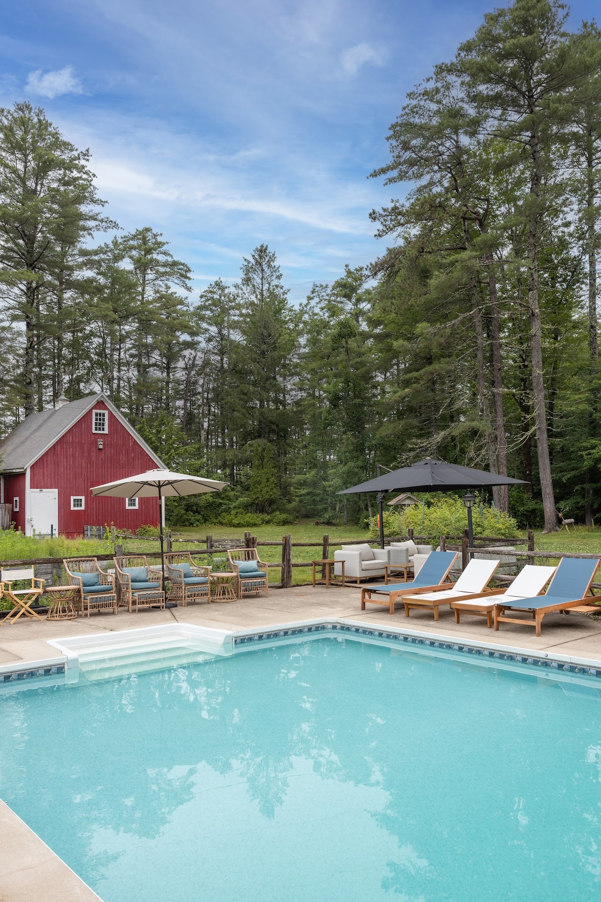 Ar aghaidh leat - bioraigh tú féin. Seo an turas a bhí tú ag fanacht leis. Éalú, scíth a ligean & taithí a fháil ar shuaimhneas, ar phríobháideacht agus ar an dúlra ag an tearmann uathúil seo i gcampa Maine. Teachín aíochta ó na 1920idí (1 as 3 theach ar ár réadmhaoin 50 acra ar imeall locha) ina bhfuil saoráidí neamhchoitianta amhail linn snámha, cúirt leadóige, duga snámha agus gníomhaíochtaí locha, sauna, tobán te, ionad aclaíochta, teallach, beárbaiciú gáis, paitió le bia amuigh faoin aer agus áit chónaithe. Ach thar aon rud eile - bain sult as suaimhneas agus socracht gan sárú ó thimpeallacht nádúrtha a chuireann Camp Tall Pines ar fáil.
