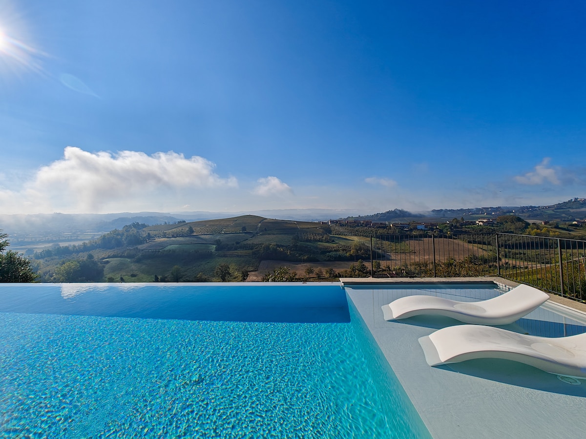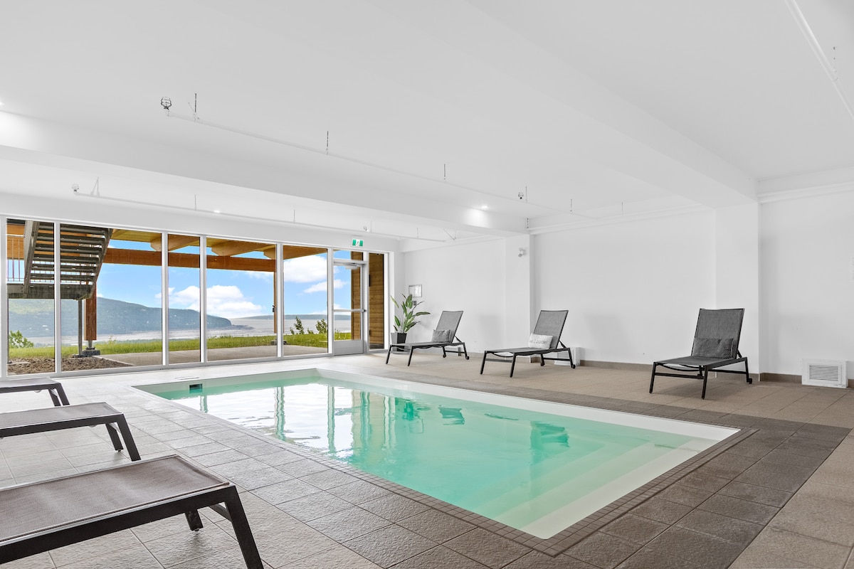 Teach fíonlainne le linn snámha agus radharc iontach