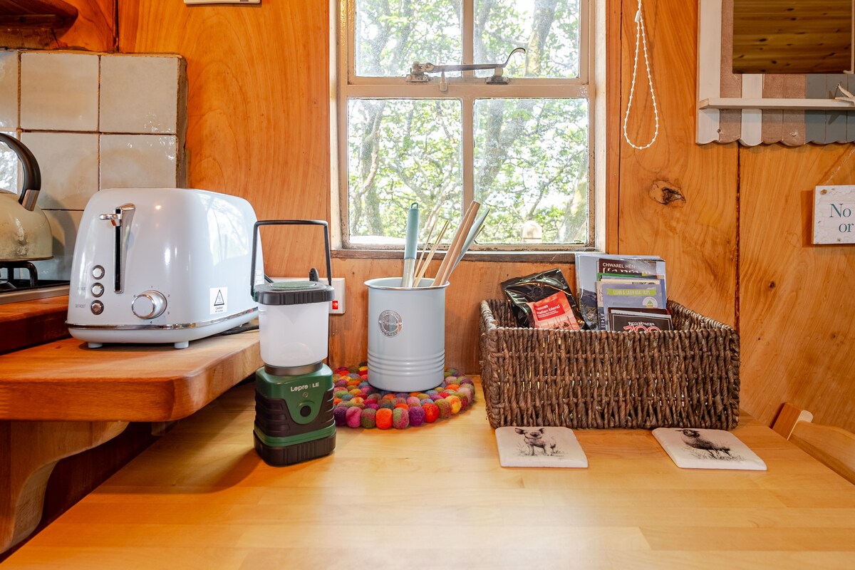Seoid atá i bhfolach. Cosy Shepherds Hut i talamh feirme idyllic