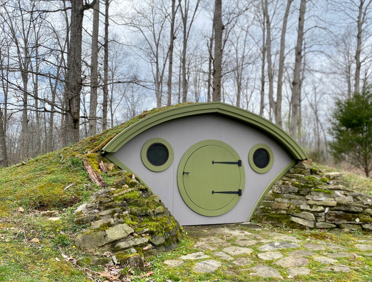 Is spás maireachtála 360 troigh cearnach é Wee Nook ina bhfuil cistin agus seomra folctha iomlán. Tá sé tucked faoi thalamh i lár na coille. Bain sult as na coillte, na hainmhithe feirme, na cosáin, an lochán agus an spás oscailte leathan agus tú anseo! Mar a dúirt JRR Tolkien: “I bpoll sa talamh bhí hobbit ina chónaí ann. Ní olc, salach, poll fliuch, líonadh le foircinn na péisteanna agus boladh oozy, ná fós poll gainimh tirim, lom, gan aon rud ann chun suí síos air nó le hithe: bhí sé ina hobbit -hold, agus ciallaíonn sé sin compord ."
