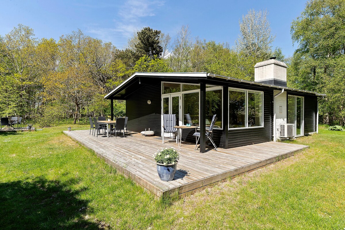 Radharc iontach 180 ˚ ar an bhfarraige, uair an chloig sa charr ó Chóbanhávan. Tá an teach samhraidh cluthar seo suite sa chéad sraith go Bøged Strand. Anseo tagann tú ar ais go teach samhraidh an tsinsear-mháthar mhór ó 1971. Ón lochtán is féidir leat taitneamh a bhaint as an radharc ar Shruth na Feá. Tá nasc snáithín sa teach samhraidh ionas gur féidir leat surfáil/sruthú ón ngréasán. Sa seomra suí tá teilifíseán níos lú freisin. Tá trampailín agus teallach lasmuigh ann. Tá carrchlós ar an gcabhsa. Cuimsíonn an praghas glanadh ach línéadach leapa agus tuáillí eisiacha.