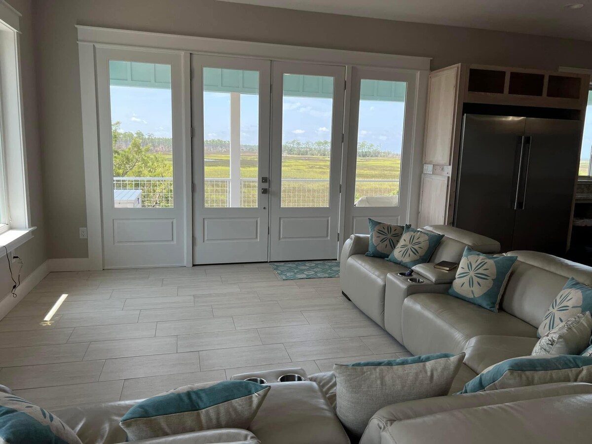 Tá an teach nua seo ag deireadh bóthair ina bhfuil radhairc iontacha den Mhurascaill. Tógáil uasscála, ach Old Florida vibe. Sunsets iontach thar an riasc agus an Murascaill. Soláthraíonn troscán póirse compordach atmaisféar ciúin suaimhneach inar féidir leat imeacht uaidh go léir. Tá tochtanna nua ar mhéid rí Tempur - Pedic ag an dá BR. Tá ardaitheoir ann chun do bhagáiste a iompar, srl chuig an bpríomhurlár. Neart spáis do bhád mór faoin teach. Tá rampa báid Jena 1/2 mhíle ar shiúl. Cuir teorainn le 5 aoi. Gan Peataí agus gan leanaí óga.