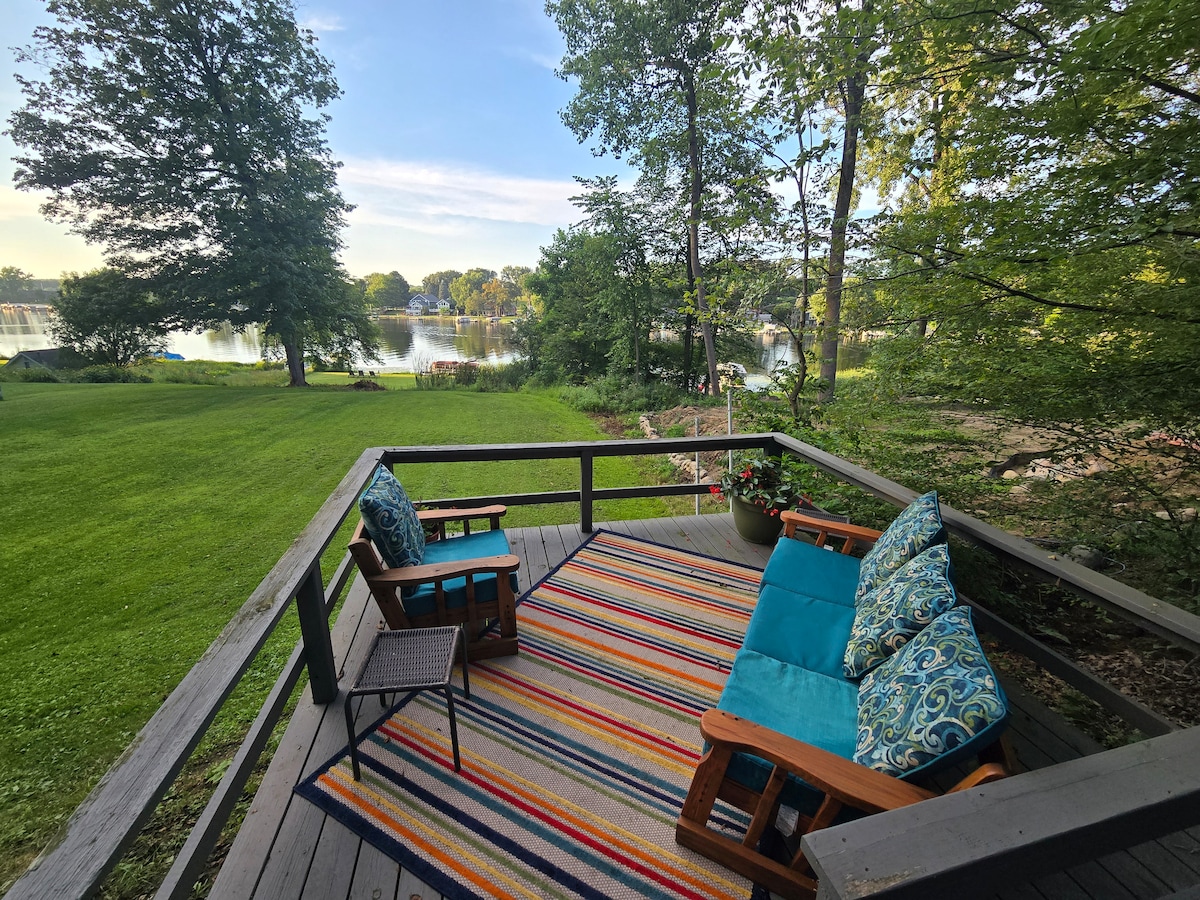 Fáilte go dtí The Wake House, tearmann cois uisce bliana ar fad ag 4 Corners! Lig do scíth ar an bpaitió, seol na cadhcanna, ceangail le do duga príobháideach le haghaidh cúrsála agus spóirt locha ó cheann ceann na bliana, bain sult as siúlóidí úra an fhómhair agus turais gheimhridh ar Toboggan Run cháiliúil Pháirc Stáit Pokagon, nó bí ag tathgadh ar Thunder Ollscoil Trine 3 sheomra leapa agus áiteanna maireachtála fairsinge le seomra cluichí Cistin iomlán, gríoscán beárbaiciú, meaisín níocháin/triomadóir, Wi-Fi tapa agus deasc Céimeanna chuig bialanna agus siamsaíocht oíche Loch James Cuir in áirithe anois é chun cuimhní cinn a dhéanamh ar an loch!