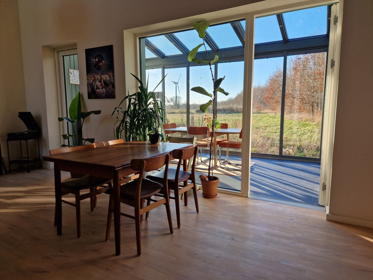 Moderne hus i økolandsby - med orangeri og udsigt
