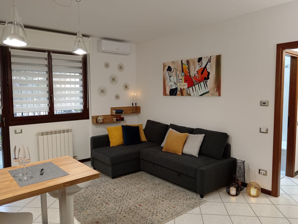 Árasán galánta 1.5 km ó aerfort Orio al Serio BGY, an - ghar do lár Bergamo, Ionad Orio agus Aonach Bergamo. Tá seomra leapa san árasán ina bhfuil leaba dhúbailte, seomra suí ina bhfuil leaba thoilg dhúbailte, cistin fheistithe, sorn ionduchtaithe, micreathonnán, citeal, meaisín caife, teilifís, Wi - Fi, aerchóiriú sa seomra leapa agus sa seomra suí, seomra folctha ina bhfuil cithfholcadán, triomadóir gruaige agus meaisín níocháin. Féinseiceáil isteach agus bricfeasta a chuirimid ar fáil. Tá páirceáil ar fáil ach é a iarraidh.