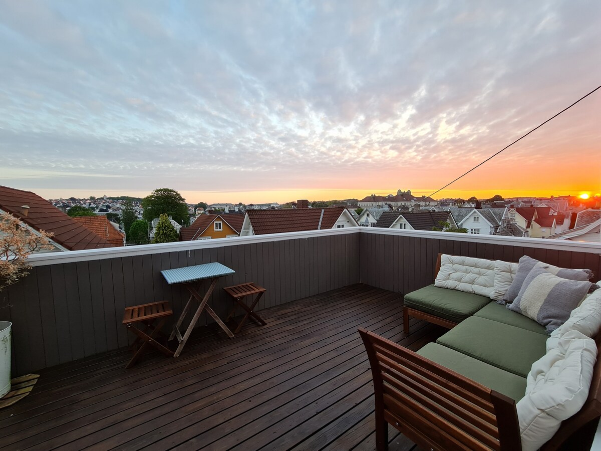 Fan in árasán fairsing 115 méadar cearnach ina bhfuil lochtán príobháideach 35 méadar cearnach ar an díon, ina bhfuil spás uathúil lasmuigh le haghaidh laethanta agus tráthnóna suaimhneacha. Suite i gceantar cónaithe ciúin in Storhaug, níl sé ach 5–6 nóiméad ar shiúl ó lár chathair Stavanger, agus tá bialanna, limistéar an chuain, agus nithe is díol spéise lárnacha inrochtana go héasca. Tá an árasán feistithe go maith le cistin lán, meaisín níocháin agus triomadóir. Foirfe do theaghlaigh, do ghrúpaí, nó do thréimhsí fanachta níos faide ina bhfuil spás agus suíomh lárnach ach suaimhneach á lorg.