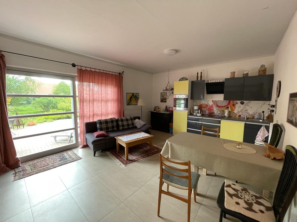 Árasán nua-aimseartha (40 m²) i suíomh ciúin ina bhfuil lochtán mór agus radhairc ar an tuath. Níl sé ach 10 nóiméad go dtí an Hamburger Volksparkstadion agus tá nasc díreach leis an A23. Tá spás ann do suas le 4 aoi (leaba dhúbailte + tolg leapa). Cistin ar leith, lánfheistithe le miasniteoir agus meaisín níocháin, seomra folctha nua-aimseartha le tobán folctha. Tá páirceáil saor in aisce ar fáil díreach os comhair an tí. Foirfe do thaistealaithe cathrach, do lánúineacha agus do thaistealaithe gnó. Is féidir linn cliabhán linbh agus cathaoir ard a chur ar fáil ar tháille ach é a iarraidh.