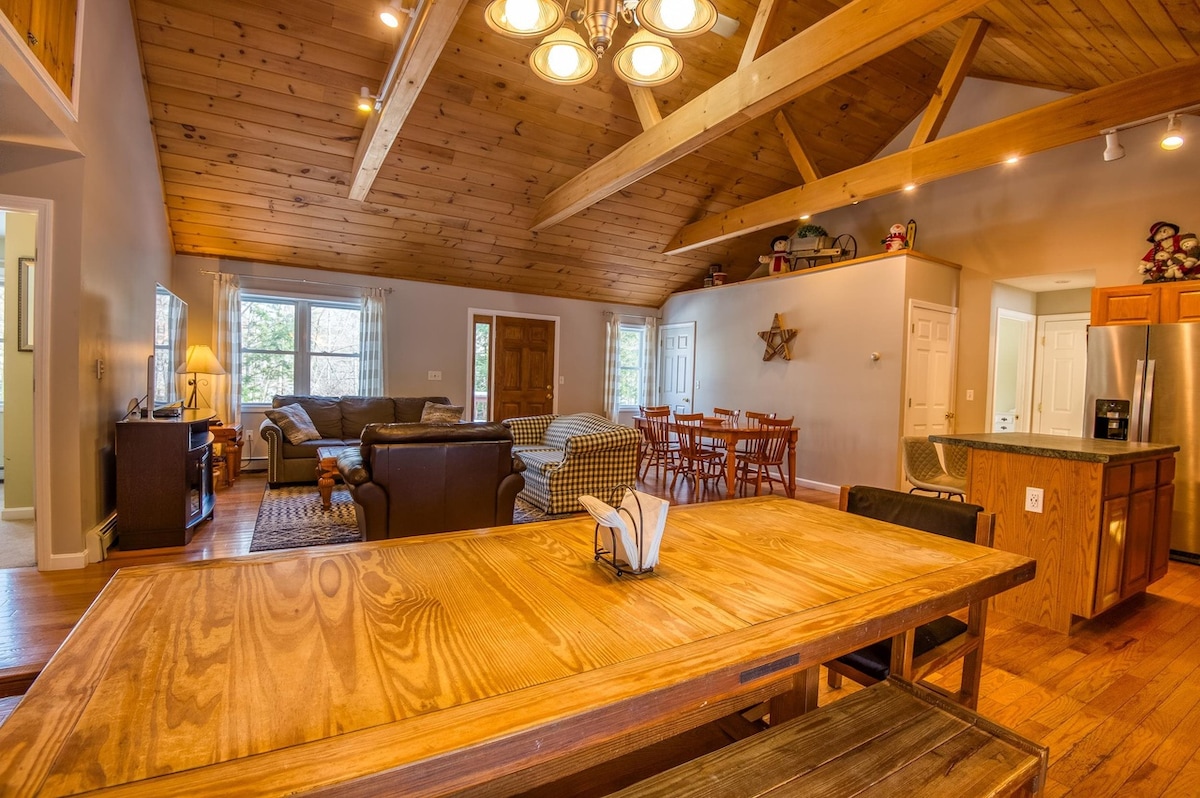 Éalaigh go Lucky Lillian, sealla ciúin atá oiriúnach do theaghlaigh ó North Conway, Storyland, Abhainn Saco & go léir atá le tairiscint ag an nGleann. Neadaithe sa choill le cosáin ar leac an dorais agat, tá plean maireachtála oscailte, 3 sheomra leapa, seomraí bónais, & tobán te príobháideach suaimhneach ar fáil sa teach seo. Ski Cranmore (5 nóiméad), Attitash (10 nóiméad), Black Mtn (15 nóiméad), Wildcat, Bretton Woods, agus Mt. Washington (25 nóiméad) nó déan iniúchadh ar Fhoraois Náisiúnta an tSléibhe Bháin. Déan áirithint anois le haghaidh saoire shléibhe dodhearmadta!