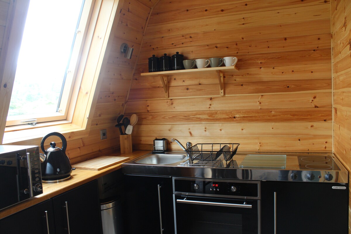 Is cábán nua - aimseartha é Gael ar chrochta oibre, a léiríonn radhairc gan bhriseadh ar bhá Portree, Ben Tianavaig agus na cnoic Cuillin i bhfad i gcéin. Tá aitriam airde iomlán sa chábán féin lena n - áirítear cistinéad feidhmiúil, limistéar suí, dóire lomáin agus svuít seomra folctha trí phíosa. Tá teacht ar leibhéal mezzanine le staighre adhmaid ina bhfuil leaba dhúbailte chompordach. Suite díreach amach ó rian Scorrybreach is é seo an ceap lainseála foirfe do d'eachtra Skye.