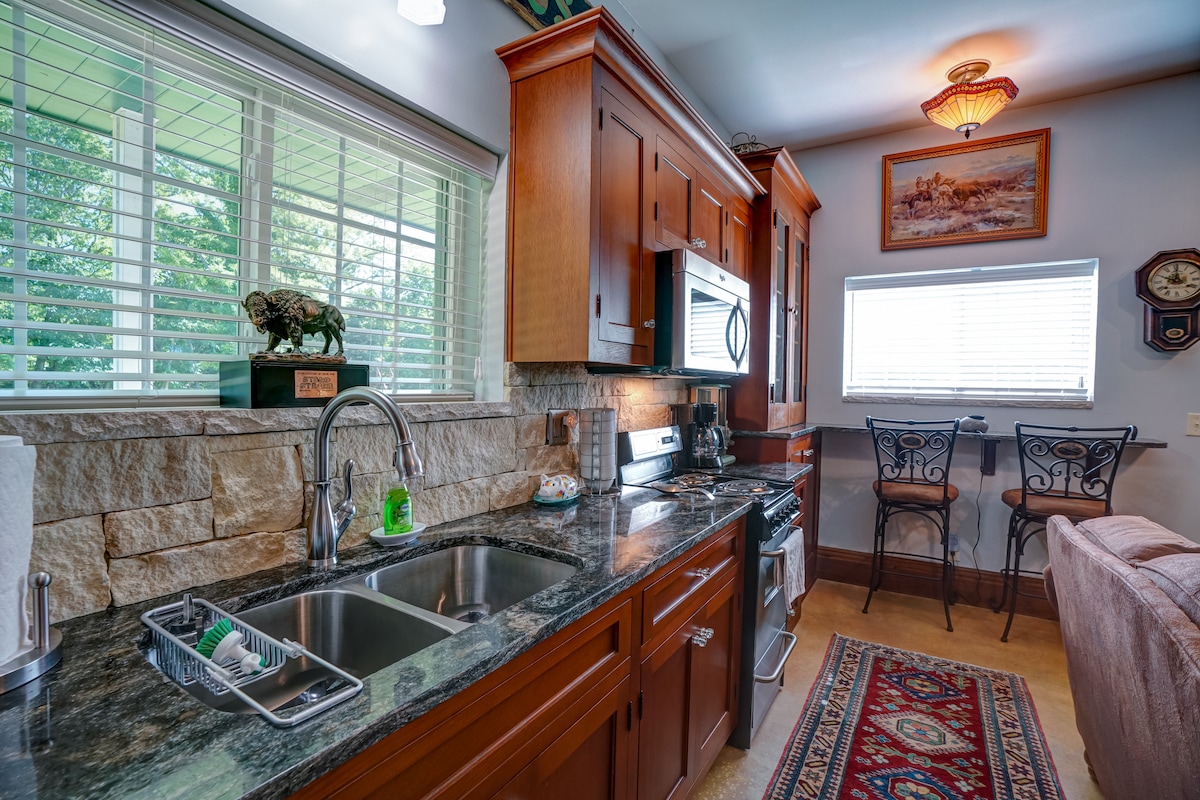 Tógtha in 1863, tá na bunurláir chrua - adhmaid agus an tobán clawfoot le ceangaltán cithfholcadáin le feiceáil sa dara scéal rómánsúil 1 lochta BR seo. Bain sult as saoire ghearr lánúineacha laistigh d'achar siúil ó Downtown Council Grove, KS. Tar éis lá a chaitheamh ag breathnú thart, fill ar do steaks Tiffany Cattle Company féin ar an ardán amuigh faoin aer! Tóg isteach an strus ó lá go lá ar shiúl sula dtiteann sé ina chodladh sa leaba iarainn ar mhéid banríona. Bain sult as Wi - Fi saor in aisce & saoráidí nua - aimseartha ar nós teilifíseán Cliste agus fan chomh fada agus is mian leat!