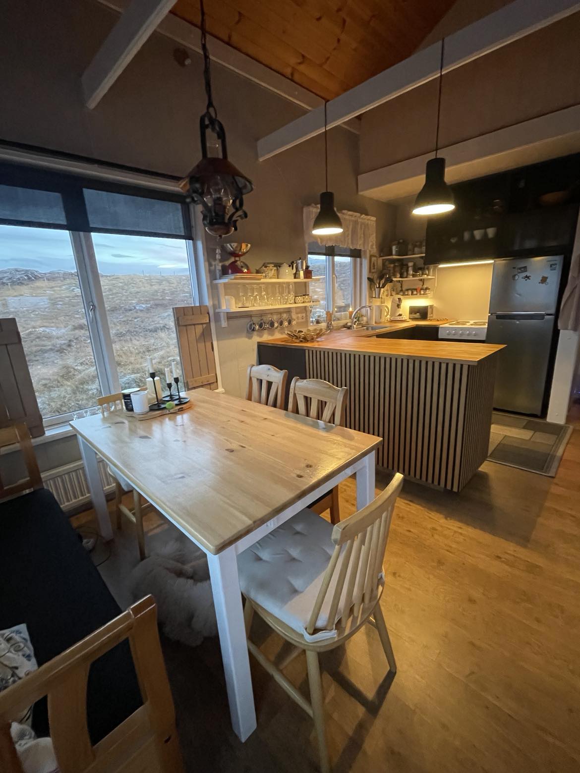 Teachín álainn 37m2 suite i gcroílár Stykkishólmur, agus radharc ar Breiðafjörður ón seomra suí. Suíomh foirfe agus siúlóid ghearr go dtí an cuan, bialanna, siopa grósaera agus linn snámha pobail. Tá an teachín beag ach fairsing, athchóirithe le déanaí le hurláir adhmaid agus teas radanta geoiteirmeach faoi urlár. Seomra folctha ina bhfuil cith, agus seomra leapa príobháideach ina gcodlaíonn beirt. Tá spás do 1-2 aoi breise sa lochta thuas.