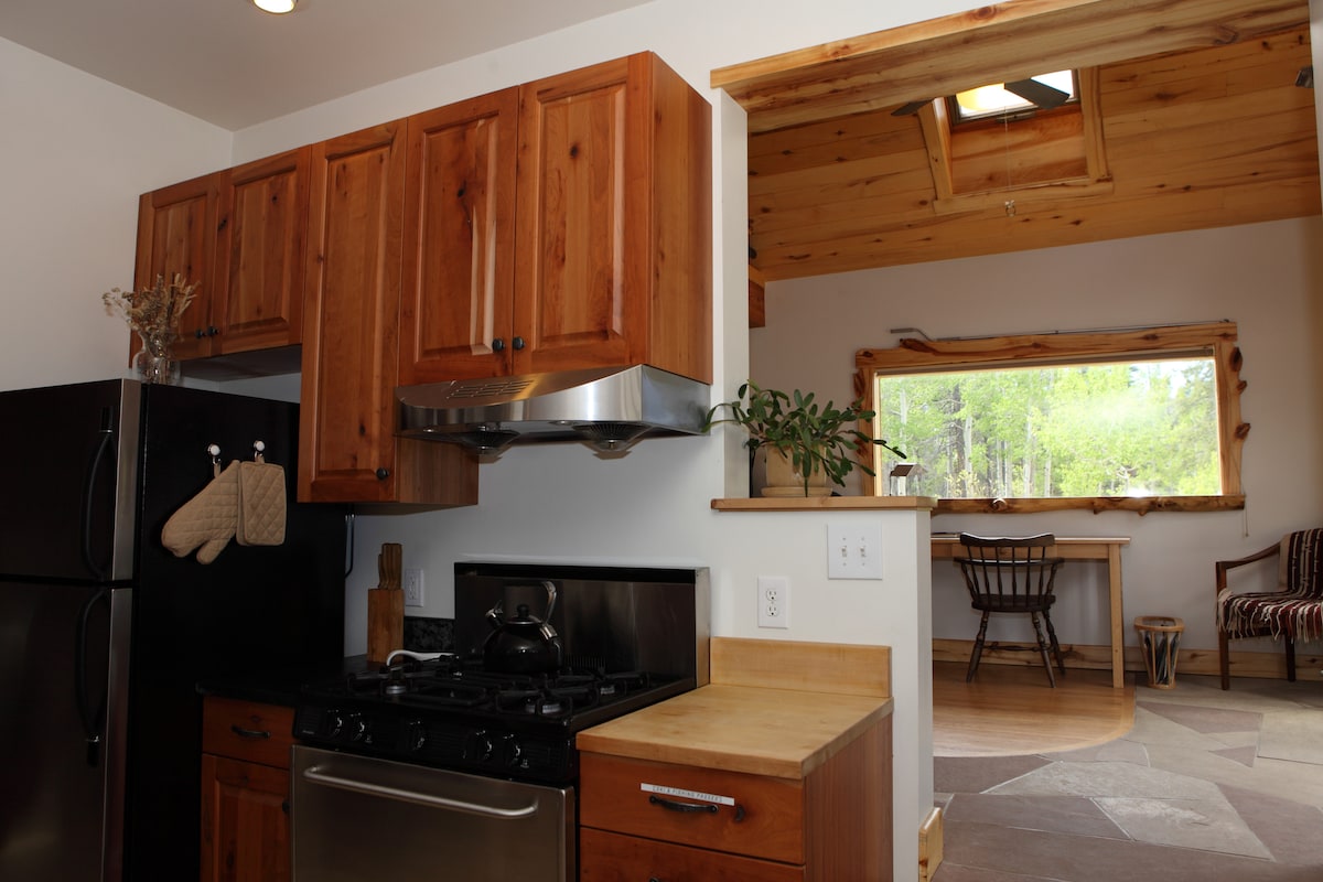 Gan táille ghlantacháin! Teach beag bídeach cluthar lámh - tógtha nach bhfuil ach 20 nóiméad ó Shráid Pearl agus Downtown Boulder. Radhairc mhóra sléibhe ó gach fuinneog, le spásanna maireachtála laistigh agus lasmuigh galore. Ideal do curláil taobh istigh chun léamh, cócaireacht, nó do scíth a ligean, le húsáid mar bhunáit bhaile le haghaidh eachtraí lasmuigh, nó chun roinnt ceoil bheo a ghabháil i mbaile sléibhe sean - ama in aice láimhe i gCnoc an Óir. Is dócha go bhfeicfidh tú réaltaí dochreidte, go ngabhfaidh tú roinnt fiadhúlra, nó go mbeidh stoirm sneachta Rocky Mountain i stíl.