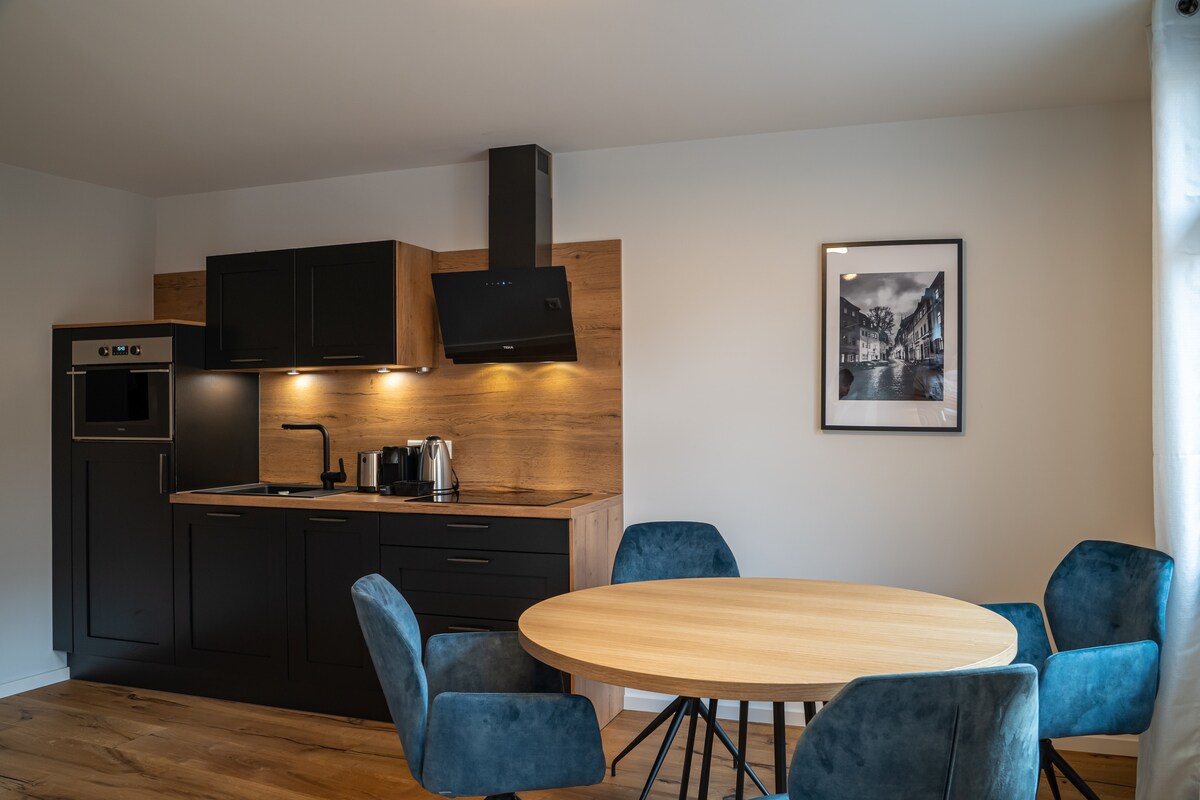 Is parlús mezzanine é an t - árasán i seanfhoirgneamh stórála den iar - chuideachta tógála gairdín Benary. Tógadh an siléar boghtach mar bhunáit an tí ag deireadh an 16ú haois. Atógadh an teach leathscoite thuas thart ar 1850 agus rinneadh athchóiriú iomlán air le blianta beaga anuas. Déantar gach balla taobh istigh de bhlaosc ar an taobh amuigh den teach a oibriú le plástar cré agus dá bhrí sin cinntíonn siad aeráid thaitneamhach faoi dhíon.