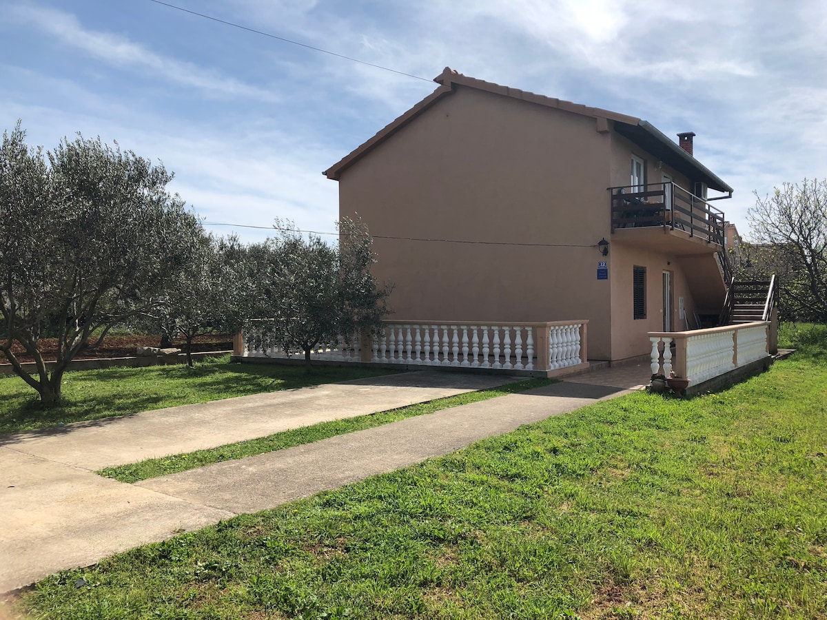 Is é an teach saoire Rita ár dteach aisling, agus anois ba mhaith linn tú a aisling le linn. Tá gnéithe tuathúla ann, gríoscán istigh, caibinéid thuathúla, scáthanna agus doirse adhmaid.. Tá sé suite i gceantar socair in áit Sukošan, 7 km i bhfad i gcéin ó chathair Zadar. Tá clós mór ann ina bhfuil áit mhór pháirceála, gríoscán, ardán, páistí playgrond. Tá sé 1,2 km i bhfad i gcéin ón gcéad trá. Is féidir leat ceist a chur orainn gach rud ag am ar bith. Tá súil agam go mbeidh muid tarraingteach do do shaoire! Tar agus bain sult as!!!!