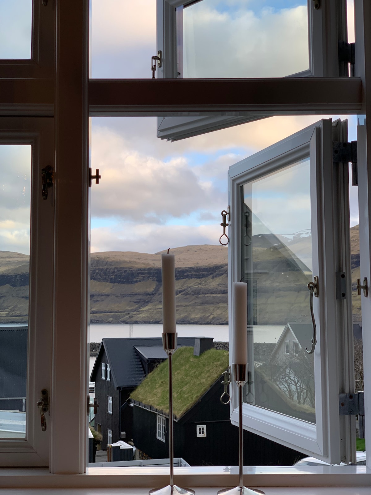 Tá an teach suite cois farraige agus radharc uaidh ar an bhfjord. Ar an taobh eile den fjord tá Kalsoy, áit ar tháinig deireadh leis an scannán deireanach James Bond. Rinneadh athchóiriú ar an Pershús 150 bliain d'aois le déanaí. Tá sé foirfe do lánúineacha agus do theaghlaigh a bhfuil páistí acu. Tá deis ann do ghníomhaíochtaí. Siúlóidí ciúine agus fánaíocht. Is é an å Storá áitiúil clós súgartha gach duine. Deiseanna maithe chun snámh a bhaint sa chuan nádúrtha gleann Gjógvin. (NÁ SNÁMH LEAT FÉIN RIAMH). Nó bain sult as an saol leis an radharc iontach ón tobán te.