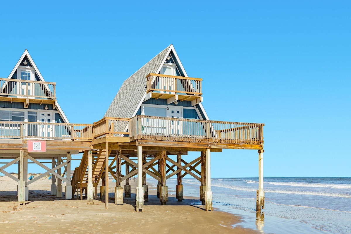 Welcome to The A-Frames, a one-of-a-kind coastal escape that lets you sleep directly over the Gulf. Newly restored, this iconic beach house is a piece of Surfside history, now available as a rental! The A-Frames are a symbol of Surfside, and now you can join the history. Whether you're here for sunrise strolls, fishing from the jetty, or just unwinding over the waves, this is an unforgettable stay. Please note this is a unique property, please read the entire description before booking.
