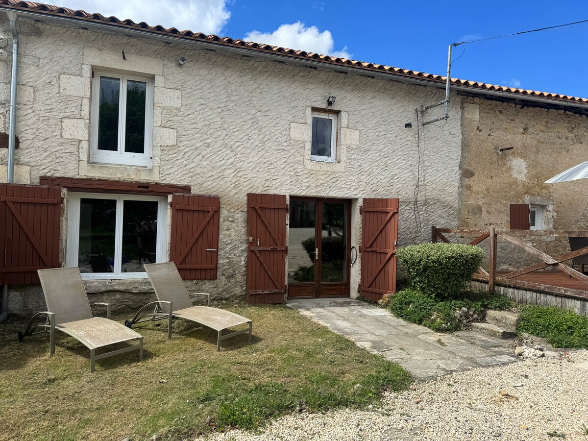 I dtimpeallacht chosanta, chnocach agus choillteach de Charente Limousine, teach traidisiúnta Charentaise, atá athchóirithe go hiomlán, atá suite i bpáirc aon heicteár. Seomra mór teaghlaigh 50 m2. Ardán mór cloiche faoi scáth péine cloiche. Sorn dóite adhmaid sa seomra suí. Lonnaithe ar imeall an tsráidbhaile le rochtain dhíreach ar na cosáin. Suíomh iontach do lúthchleasaithe agus/nó do theaghlaigh ar mian leo taitneamh a bhaint as an dúlra agus as ainmhithe: Tá capaill, caoirigh, sicíní i láthair ar an réadmhaoin.