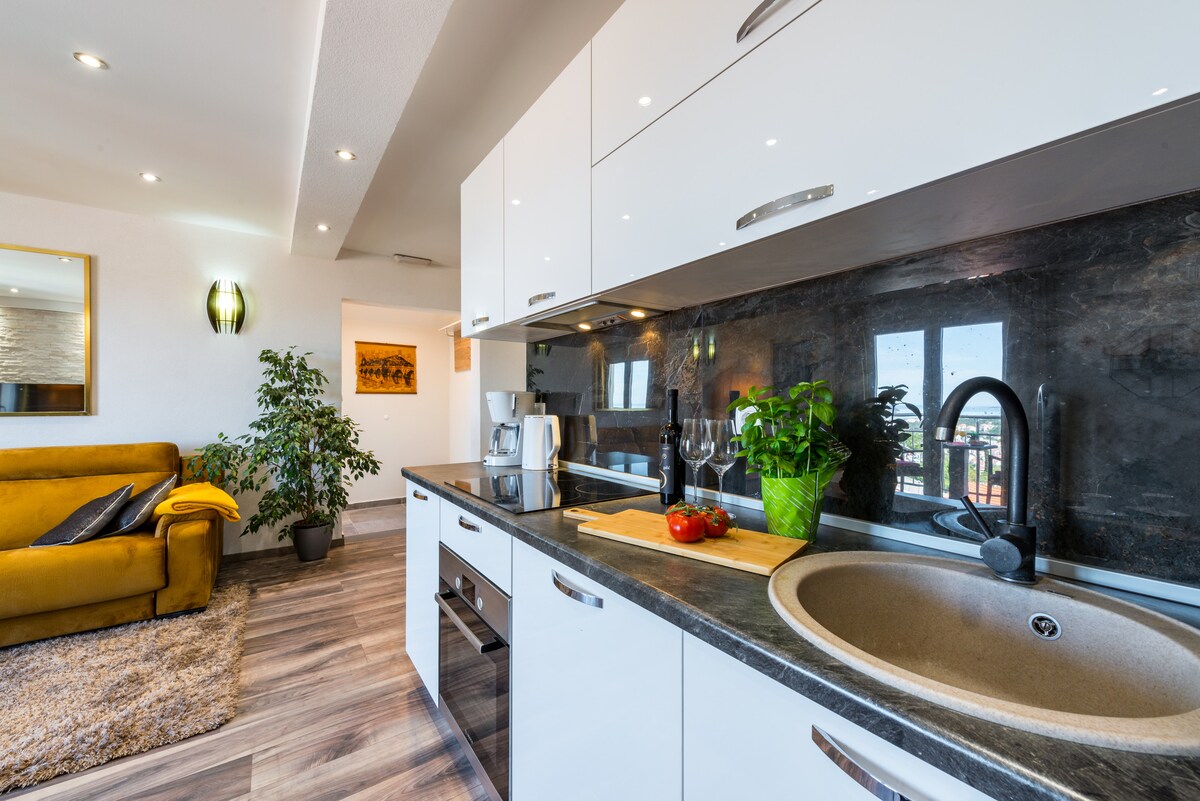 Nia - agus árasán nua lánfheistithe dhá sheomra leapa deluxe atá feistithe go hiomlán ar chnoc beag a chuireann borradh faoi Radhairc Farraige iontach thar an bhfarraige Aidriadach agus cathair iomlán Dubrovnik!:) Tá ardán príobháideach fairsing ag an árasán le limistéar suí amuigh faoin aer & sundecks. Tá teilifís chliste Wi - Fi saor in aisce, scáileán cothrom le cainéil chábla agus aerchóiriú i ngach seomra ar fáil. Tá Páirceáil saor in aisce ag aíonna agus caithfidh siad dul suas staighre chun bealach isteach an árasáin a bhaint amach. Tá stad bus poiblí faoi bhun an árasáin & níl an Seanbhaile faoi chosaint UNESCO ach 3km ar shiúl.