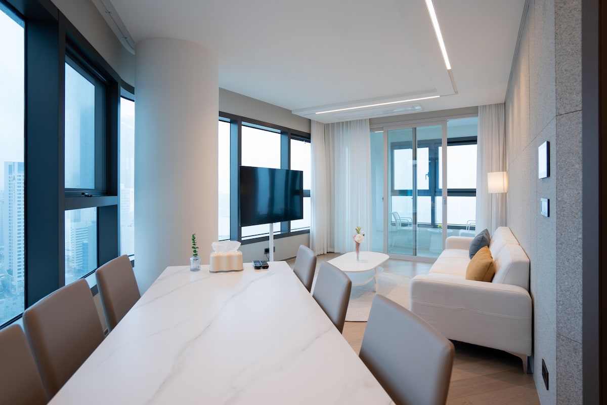 [Comocasa] #Haeundae #3 nóiméad go dtí an trá #Radharc lánléargais #Seomra aonair #Nua-thógtha #Linn snámha gan teorainn #Spa #Sómasach