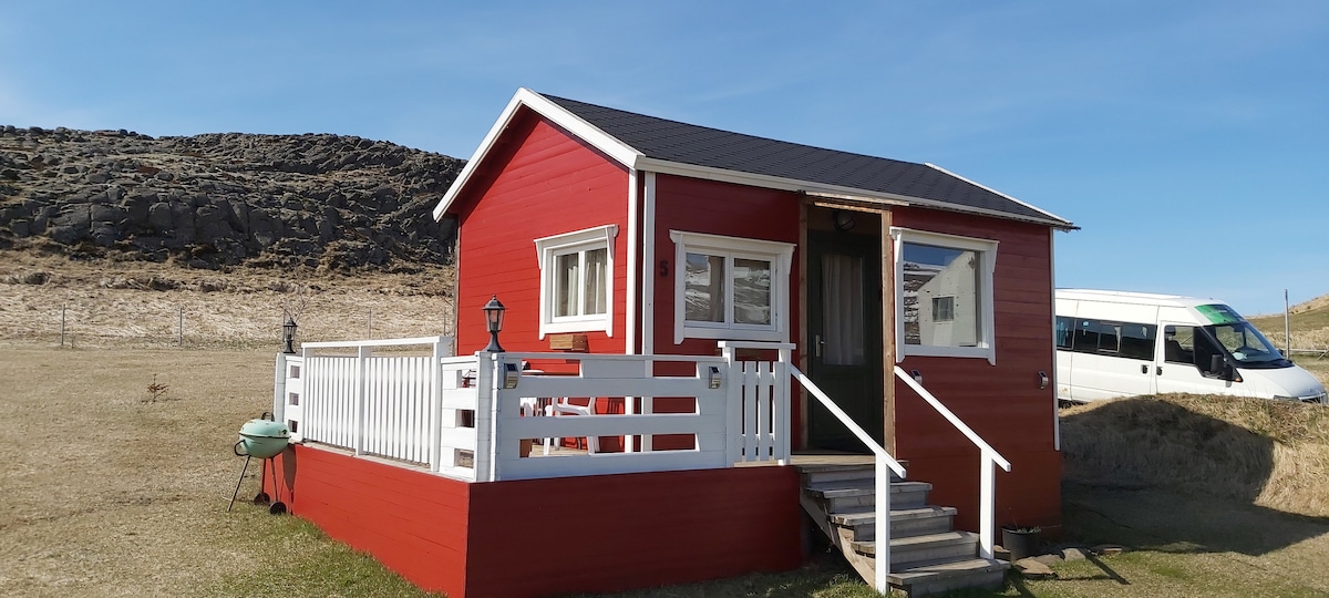 Cábán álainn, príobháideach adhmaid atá suite i sráidbhaile beag ar chósta thiar Thuaidh na hÍoslainne. Scoite amach go leor le haghaidh príobháideachta pearsanta, fós gar go leor do lár an tsráidbhaile agus an phobail. Is é nádúr na hÍoslainne gan teagmháil cúlra an chábáin, le radhairc sléibhe, radhairc aigéin, bealaí áille fánaíochta timpeall an cheantair, tránna gainimh dubha agus truailliú beag solais le haghaidh radhairc iontacha ar Shoilse an Tuaiscirt. Is áit fíor - fhoirfe é le haghaidh eispéireas barántúil sa dúlra Íoslannach.