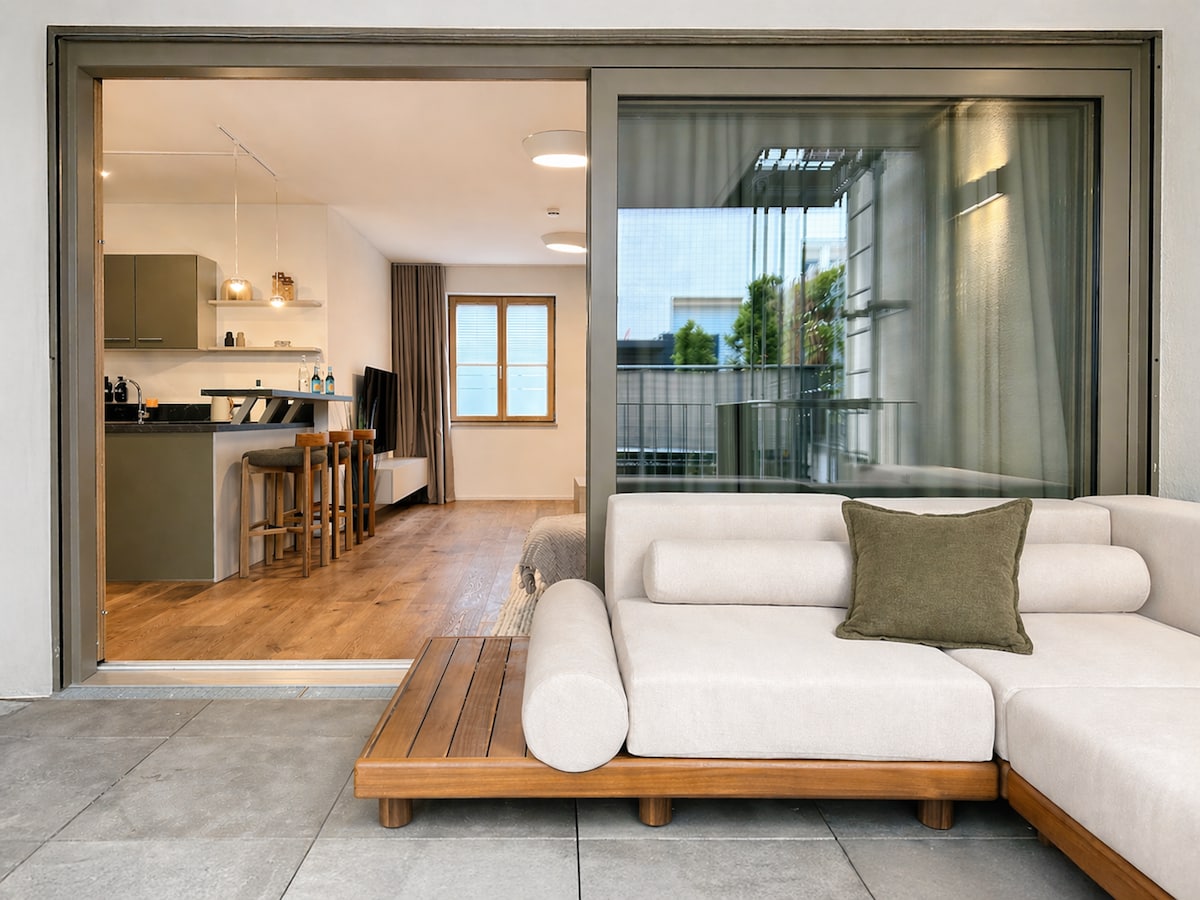 Dein Zimmer ist im Glamour Stil mit modernen goldenen Akzenten eingerichtet. Das 35m² Studio enthält ein BOXSPRINGBETT, SMART-TV mit gratis NETFLIX & WIFI, Küchenzeile + NESPRESSO und kostenlose Parkplätze. Das Appartement befindet sich im Hotelturm - Wahrzeichen & höchstes Gebäude Augsburgs, fußläufig in die Innenstadt (10/15 min) + zum HBF. Du wohnst in einer der höchsten Etagen. Genieße bei schönem Wetter den Blick über Augsburgs Alpen.