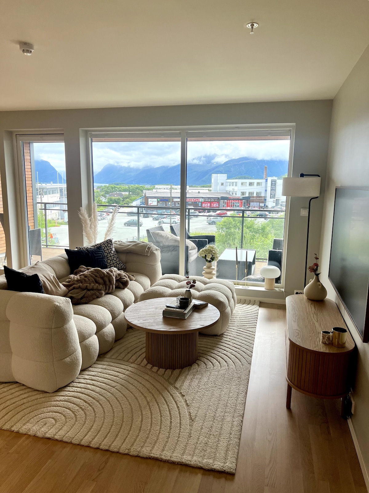 Aimsigh suaimhneas le do mhuintir san áit bhlasta seo atá timpeallaithe ag dúlra álainn. Anseo is féidir leat taitneamh a bhaint as radharc na nAlp Sunnmøre le beanna cúnga agus sléibhte iontacha. Tá airde bhreise síleála san árasán agus tá fuinneoga móra sa seomra suí a sholáthraíonn atmaisféar aerach, geal agus éadrom. Laistigh agus lasmuigh ar an ardán mór is féidir leat taitneamh a bhaint as lánléargas troscán suíocháin blasta. Anseo tá sléibhte, uisce agus saol lasmuigh agat díreach taobh amuigh den doras, le hiascaireacht agus deiseanna fánaíochta gan deireadh.