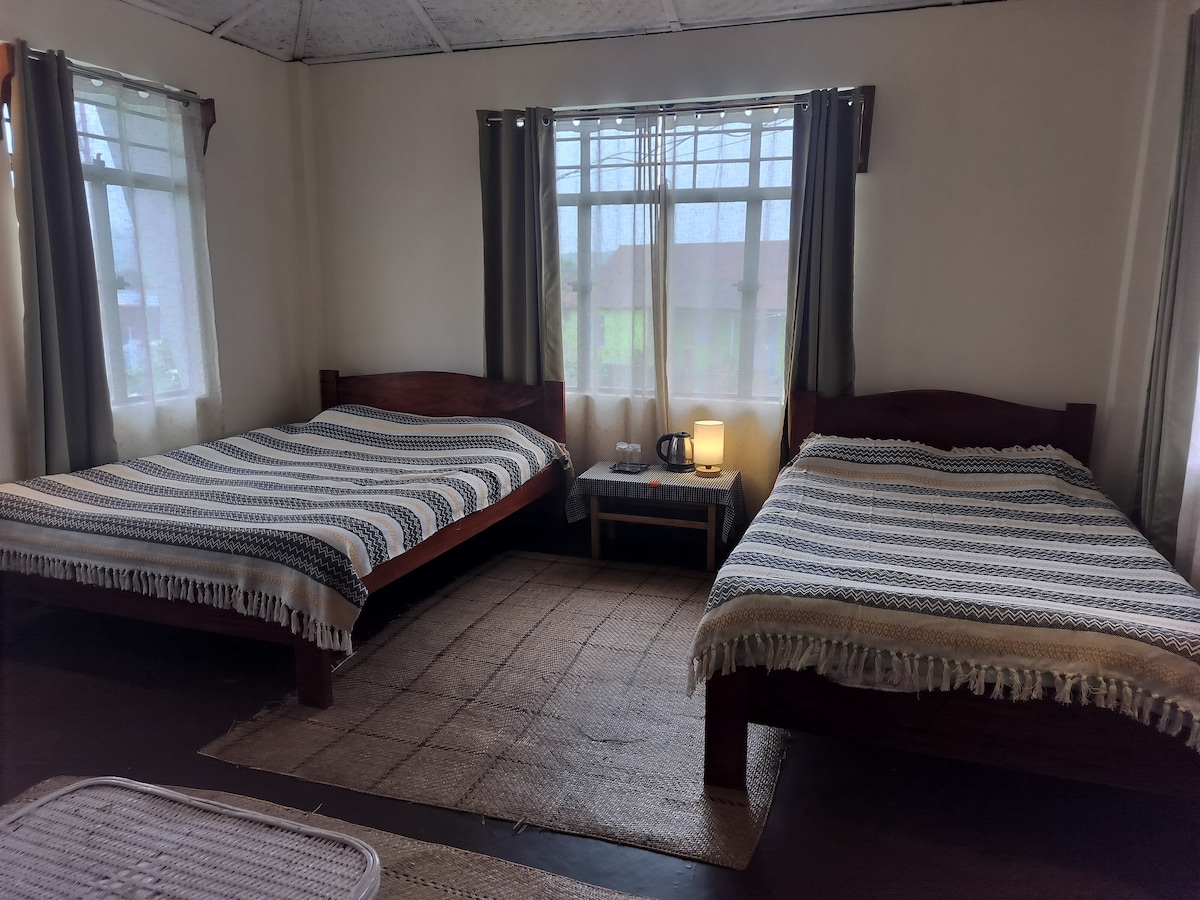 Seomra dhá leaba agus dhá sheomra folctha. Suíomh i lár Mawlynnong Village (Cleanest Village). Tá an seomra seo ar an gcéad urlár agus tá sé glan agus sábháilte. Tá dhá sheomra leapa ann le seomra folctha príobháideach. Páirceáil saor in aisce d'fheithiclí ar urlár na Talún. Cuireann sé saoráidí bunúsacha ar fáil, géasar le haghaidh uisce te +Cithfholcadán. Is féidir leat réamh - ordú do do dhinnéar agus Bricfeasta tá bialann ann chomh maith le siúlóid nóiméad ó... Fanacht iontach le blaiseadh a fháil i Mawlynnong Village.