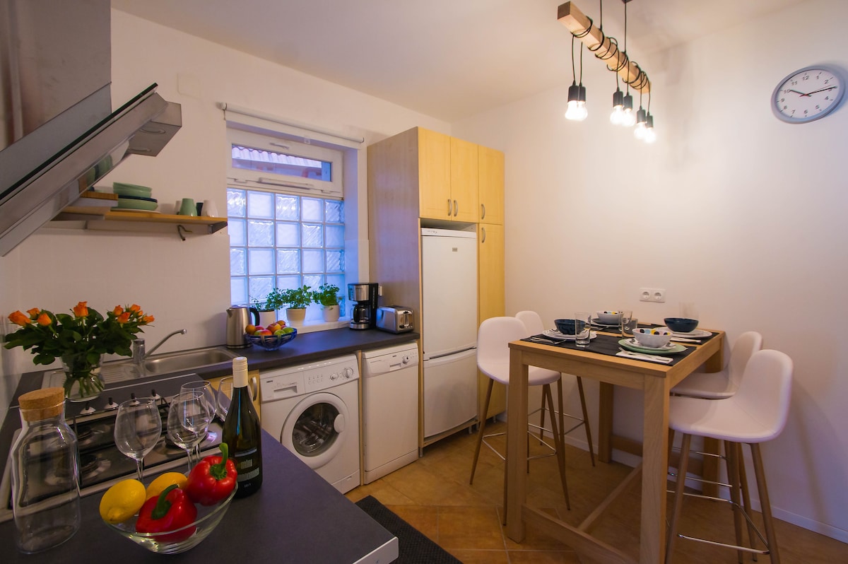 Déan iniúchadh ar lár stairiúil Székesfehérvár ón árasán galánta nua - aimseartha seo! Lena shuíomh lárnach, tá bialanna, siopaí taosráin, beáir agus sainchomharthaí, páirceanna amhail an Zichyliget, Páirc na Corónach nó an loch bádóireachta cúpla nóiméad siúil uait. Soláthraíonn an leaba boxspring compordach an chuid eile foirfe, agus tá an chistin lánfheistithe oiriúnach le haghaidh bricfeasta nó dinnéar tapa. Foirfe le haghaidh fámaireachta agus scíthe araon!