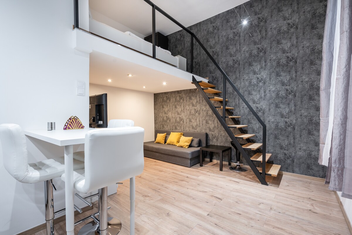 Ciceáil siar agus chillax i stíl ag an stiúideo sár - lárnach seo, i gcroílár na cathrach, ach thar aon rud eile! Radharc na cathrach nach féidir a shárú ón ardán dín, áit ar féidir leat taitneamh a bhaint as solas te an tsamhraidh, an aimsir scamallach, nó féachaint ar an sneachta ag titim thar an gcathair. Faigh espresso nó gloine rós anseo sula dtosóidh tú do lá mór Búdaipeist! Is féidir le páirceáil i mBúdaipeist a bheith ina tromluí, ach fuair mé do chúl, mar go dtagann an t - árasán le do spás páirceála sábháilte féin i ngaráiste príobháideach 1 nóiméad ar shiúl ó d'áit!