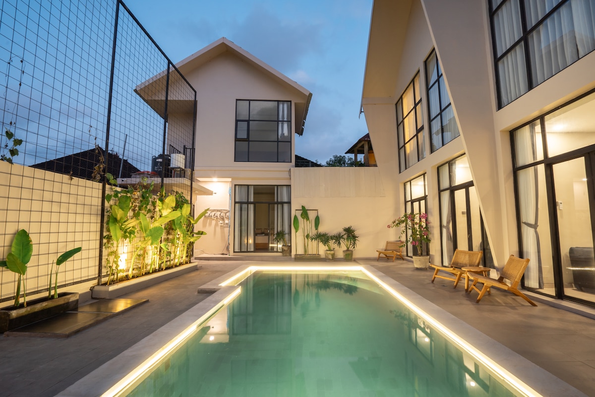 Kick back and enjoy a comfortable stay in this modern 1-bedroom loft located in a quiet area of Babakan, Canggu. The villa features a fully enclosed living space with TV, dining area, equipped kitchen, private pool, and garden — perfect for relaxing or working with 200 Mbps high-speed internet. Conveniently close to cafes, restaurants, gyms, and just minutes from the beach, this hideaway offers both tranquility and easy access to Canggu’s lifestyle.d relax in this calm, stylish space.
