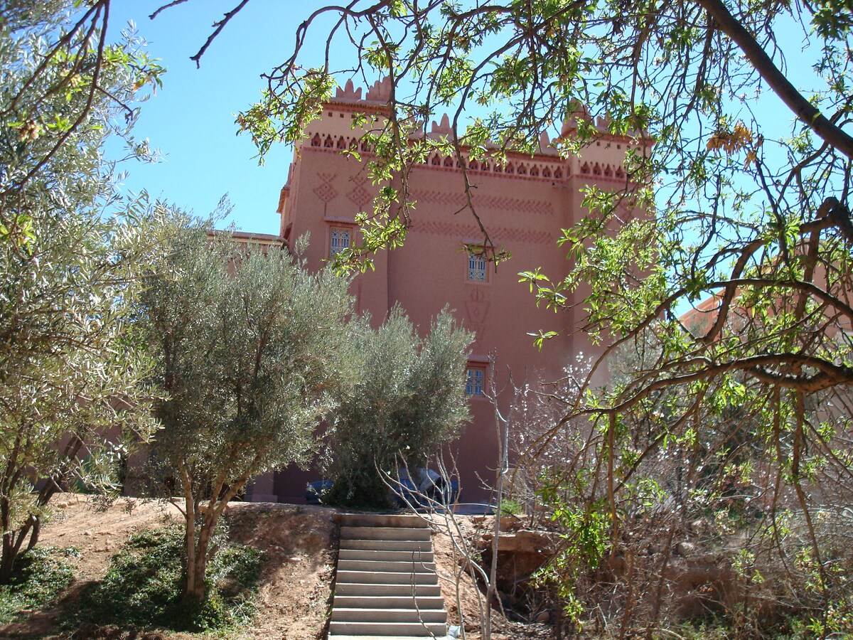 Cuirimid fáilte romhat isteach inár n - áit chónaithe, teach teaghlaigh Berber. Tá d'árasán príobháideach in aice lenár dteach; cuid riad, cuid de kasbah, pluais chuid, ár dteach álainn athchóirithe, nua - athchóirithe, tá cuid mhaith den draíocht agus den traidisiún ann agus saoráidí nua - aimseartha san áireamh (leithreas an Iarthair, meaisín níocháin, fearais, srl) lena chinntiú go mbeidh tú compordach. Téann cuid dár n - ioncam chuig comharchumann áitiúil de chuid na mban Berber a chruthaíonn na cairpéid is fíorálainn, lámhdhéanta, ar féidir leat cuairt a thabhairt orthu más mian leat.