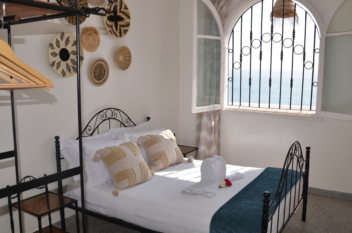 Déan iniúchadh ar dhraíocht bharántúil ár svuít Berber, spás oscailte atá deartha do do chompord agus do scíth a ligean. Cuimsíonn sé: • Leaba dhúbailte d'oícheanta síochánta, • Leithreas príobháideach agus cithfholcadán do do phríobháideacht, • Cistin bheag amháin ina bhfuil cistinéad • Áit tholgach le haghaidh tae nó caife . Gach ceann acu le radhairc iontacha ar an bhfarraige, foirfe do chuimhneacháin scíthe agus cuimhní cinn . Tit i ngrá le hatmaisféar draíochtúil na sraithe Berber seo