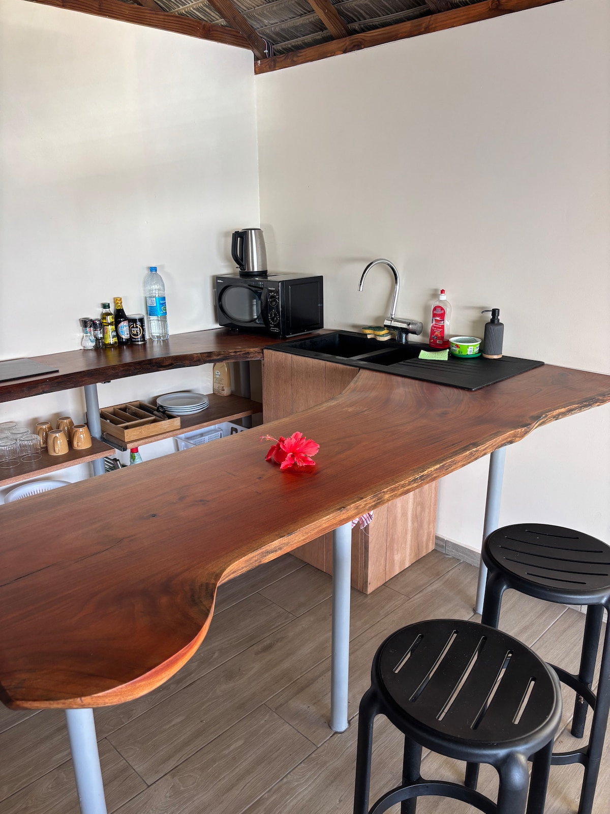Slisne beag ciúin de pharthas, sna sléibhte, 2 nóiméad ón bhfarraige. Timpeallaithe ag an dúlra, agus ag crainn torthaí, tá an teach seo le draíocht Pholainéiseach foirfe chun do scíth a ligean agus dícheangal a dhéanamh. Tá sé oiriúnach chun taitneamh a bhaint as áilleacht Tahaa i suíomh simplí soiniciúil. I lár an dúlra, b'fhéidir gurb é an saol áitiúil sin — cosúil le cúpla feithid (neamhdhíobhálach) — a léiríonn é féin uaireanta. Tá sé mar chuid de dhraíocht nádúrtha agus bharántúil na háite.