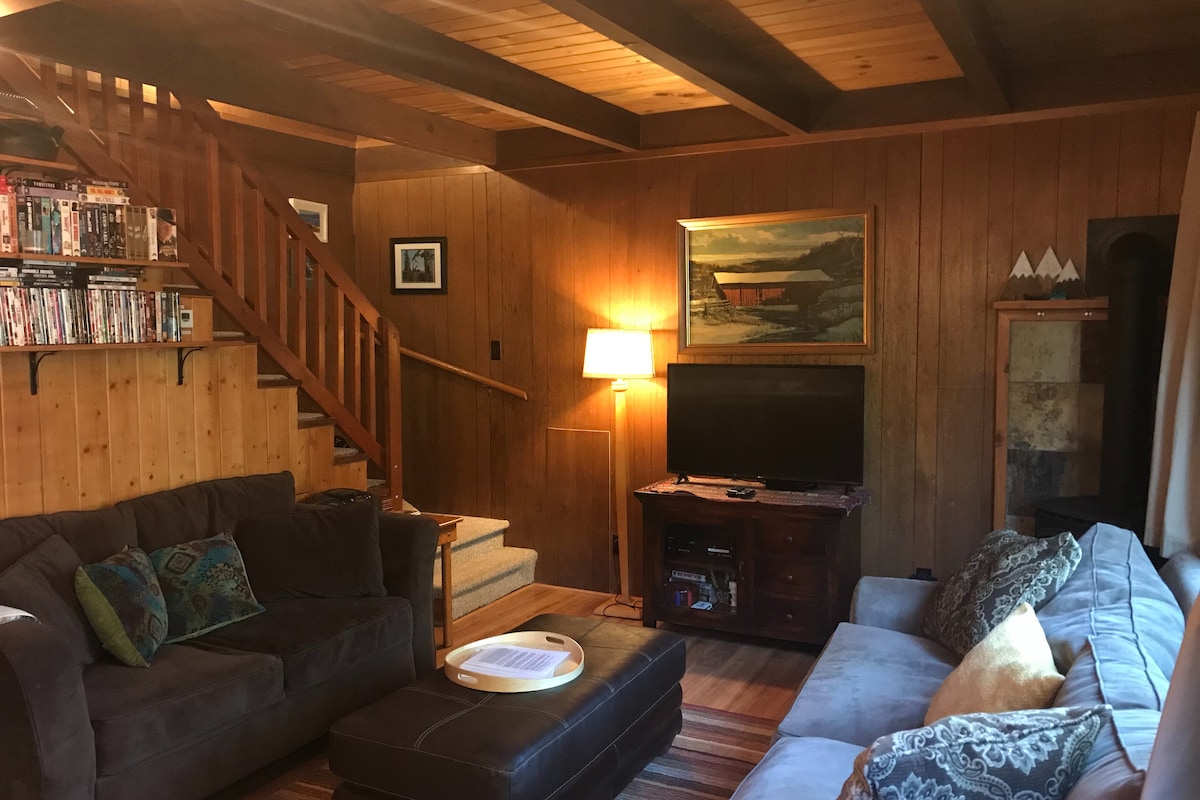 Tá an cábán seo i stíl an tsealla fairsing, compordach agus tá sé suite go foirfe i gCladach Thiar Tahoe. Taitneoidh an tsíleáil bhíoma oscailte boghtach agus an plean urláir seomra iontach leat. 2 BR, 1.25 Bath, agus Lochta thuas staighre. Codlaíonn sé nó sí 6 dhuine fásta go compordach (4 dhuine fásta). TOBÁN TE faoi na réaltaí. 2 bhloc ón trá ag Water's Edge (oscailte do bhaill dár HOA), ag fánaíocht amach an doras tosaigh. Ionad saoire sciála Homewood, Meeks Bay, páirc Stáit Bliss, Sugar Pine Point, Emerald Bay go léir laistigh de thiomáint 15 nóiméad ónár gcábán. Suíomh foirfe.
