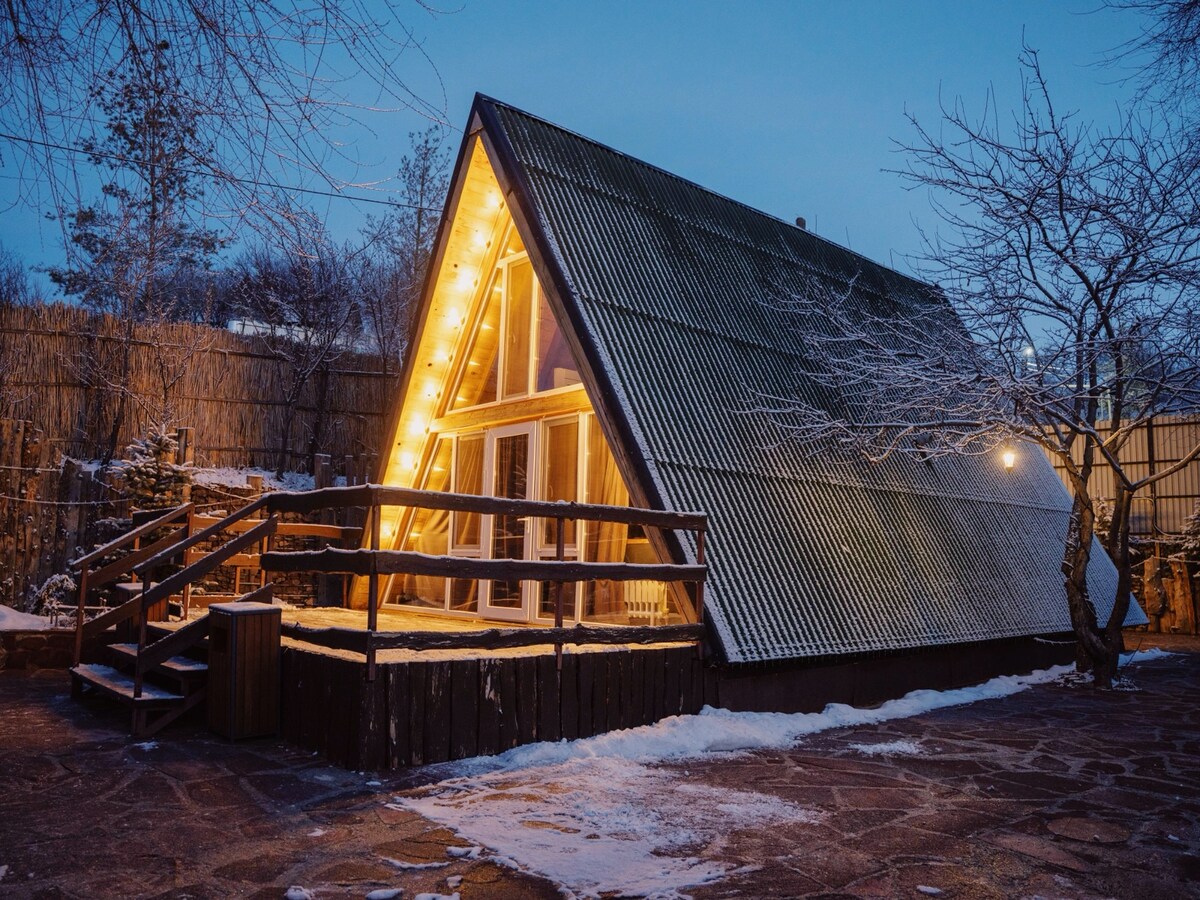 Neadaithe sna sléibhte gleoite amach ó bhruach abhainn atá soiléir go criostail, tá an teach teolaí seo i stíl A - fhráma foirfe dóibh siúd atá ag lorg príobháideachta agus comhluadair leis an dúlra. Tugann síleálacha arda agus fuinneoga móra deis duit taitneamh a bhaint as radhairc iontacha ar an radharcra sléibhe agus ar an abhainn bhablach, rud a chruthaíonn mothú fairsinge agus solais. Is é an teach seo an áit fhoirfe le haghaidh saoire shuaimhneach, siúlóidí lasmuigh agus taitneamh a bhaint as áilleacht an dúlra máguaird.