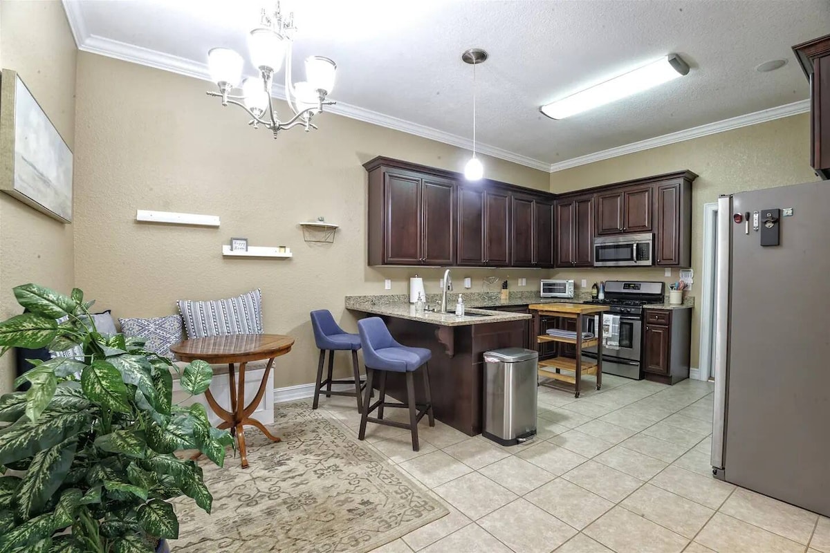 Agus é suite go háisiúil ar an mBóthar Ard, díreach síos an tsráid ó Staid Doak Campbell de chuid FSU, tá an teach athchóirithe 7+ seomra leapa seo oiriúnach do chuairteoirí go Tallahassee. Neadaithe ar 2 acra i gcroílár na cathrach, tá 3,700 troigh chearnach de dhraíocht agus de chompord sa teach cónaithe fairsing seo. Tá an teach seo deartha chun freastal ar riachtanais aon ghrúpa mór. Tabhair faoi deara, le do thoil, go bhfuil 7 gcinn de na 8 seomra leapa sa liostú seo. Má tá suim agat sa seomra leapa breise 400 troigh cearnach King ar an gcéad urlár cúil, déan teagmháil le do thoil le haghaidh rátaí.