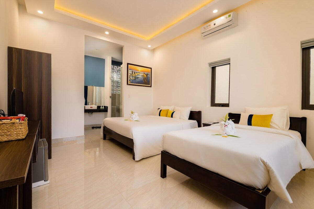 Rugadh Akala Villa mar thoradh air sin chun teach saoire gan fasach a chruthú i mbaile íocónach Hůi An. Dearadh ailtireachta Daring, cruthaithe go sciliúil ag ceardaithe & lucht saothair áitiúla, tá seomraí leapa fairsinge sómasacha in Akala Villa. Tá an ráta seo le haghaidh 3 sheomra leapa (1 x Rí & 2 x Rí nó Cúpla). Tá áit suí agus bia il - spás ann, cistin cócairí, áiteanna itheacháin laistigh agus lasmuigh, & linn snámha 17 méadar ar fad i ngairdín méithe. Déan teagmháil leis an óstach nó féach liostú eile le haghaidh suas le 6 sheomra leapa.