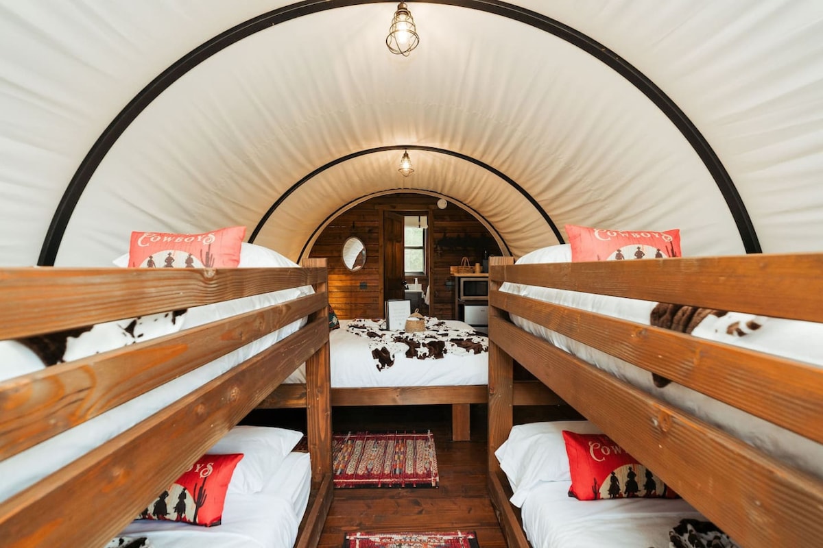 Bí réidh ag an gcábán saoire uathúil suaimhneach seo. Lonnaithe ag Beaver Creek Campground. Ag breathnú amach ar an abhainn shuaimhneach. Leaba rímhéide amháin, chomh maith le tolg beag a chodlóidh go héasca 2 pháiste, nó duine fásta amháin. Troscánaithe le cuisneoir beag, micreathonnán, agus Keurig. Tá gach rud suite in aon seomra fairsing amháin, agus tá an teach folctha (sa phictiúr) síos an cosán. Tá siopa ginearálta ar réadmhaoin ina bhfuil na bunriachtanais ar fad freisin. Is í an áit fhoirfe í chun do scíth a ligean, agus chun do scíth a ligean.