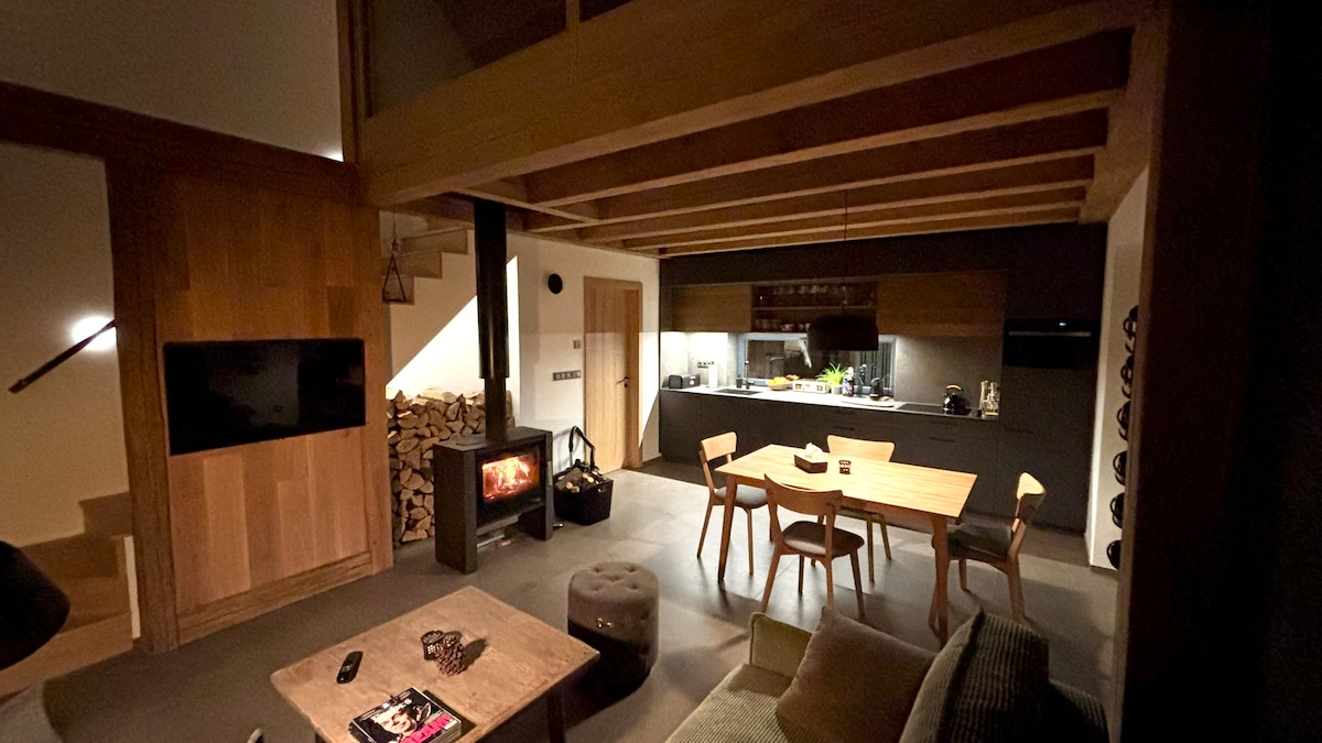 CUIREADH TÚS LEIS AN OIBRÍOCHT ÓN 2/2025 FOIRGNEAMH NUA Tá foirgneamh adhmaid gloine nua - aimseartha ag fanacht leat, spreagtha ag an stíl sléibhe, áit a bhfuil an meascán d'adhmad, de ghloine agus de chloch chun tosaigh. Radharc ar Tanvaldský Špičák i Sléibhte Jizera go croíúil ag an teallach cloiche. Fan le grúpa cairde níos mó - is féidir an dá shealla Smrž 1 agus Smrž 2 a ligean ar cíos. Tá gairdín i ngach teach ina bhfuil lochán, ardán, sabhna agus tobán te lasmuigh, áit a bhfuil príobháideacht ina tosaíocht. Tar agus bain sult as an tsíocháin agus an áilleacht i seallaí sléibhe nua - aimseartha.