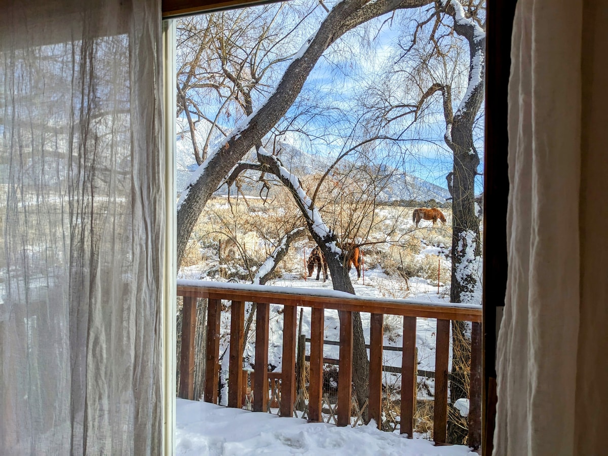 Lig do scíth agus athcheangail sa stiúideo pearsanta galánta seo atá suite ar bhruach an Rio Pueblo. Déan iniúchadh ar cheantar draíochtúil Taos ónár saoire ghearr atá suite go lárnach, nó análaigh go domhain agus lig do na coillte cadáis maorga d'anam a athnuachan. Tar éis lá sciála nó fánaíochta, bí teolaí cois teallaigh nó ullmhaigh béile sa chistin dea - cheaptha. Ag an dólás, lig do scíth ar an deic phríobháideach — féach ar éin ag filleadh ar an nead agus cuireann réaltra réaltaí fáilte romhat go Taos.