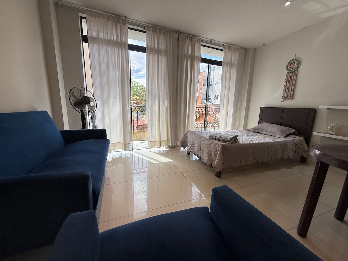 Monoambiente meallacach le Paitió Príobháideach, Níochán agus Limistéar Páirceála. Foirfe don ghearrthéarma nó don fhadtéarma, cibé acu do dhuine amháin, do lánúin nó do theaghlach de thriúr. Lonnaithe i gcomharsanacht chiúin lárnach in Tarija, níl ach bloc amháin ó Parque Bolívar agus timpeallaithe ag gnólachtaí agus seirbhísí éagsúla laistigh d'achar siúil ó d'árasán.