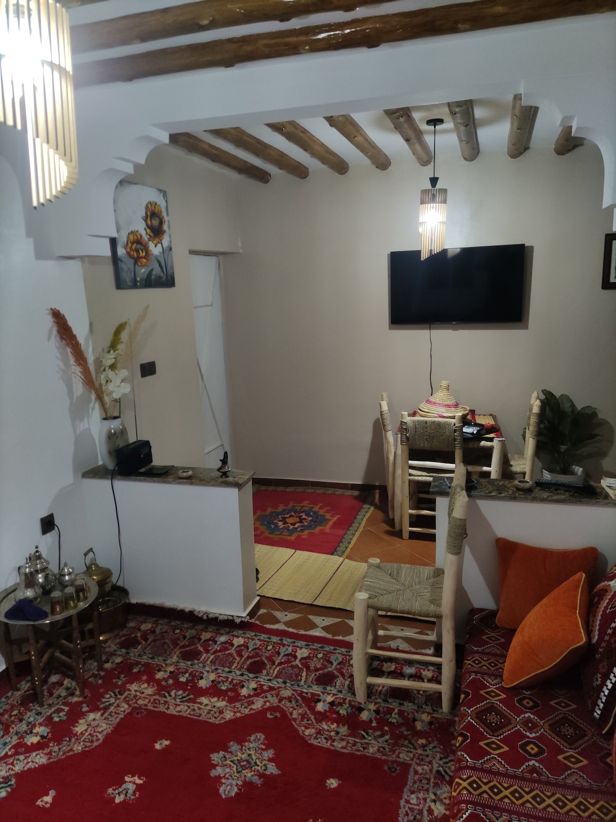 Riad salachar traidisiúnta i gceantar Kasbah ag bun cul - de - sac in aice leis na ramparts. Is teach gairdín é atá timpeallaithe ag nádúr gan mhilleadh agus ciúin. Tá 3 sheomra leapa sa Teach ina bhfuil 3 sheomra folctha lena n - áirítear 2 sheomra le leithris. Teach saoire fíor - is fearr leat ina bhfuil go leor ardáin chun do scíth a ligean timpeall ar phaitió méith.